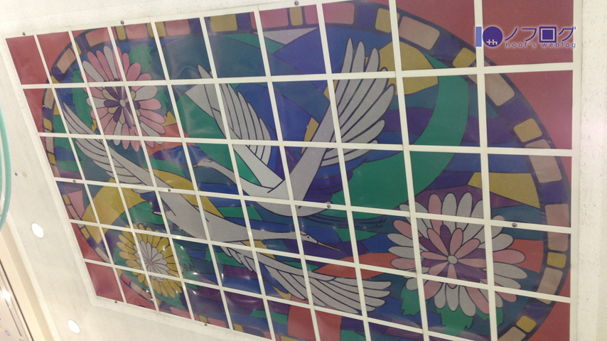 天井にはヤマザワの看板通りの鳥のステンドガラス風の照明があった。